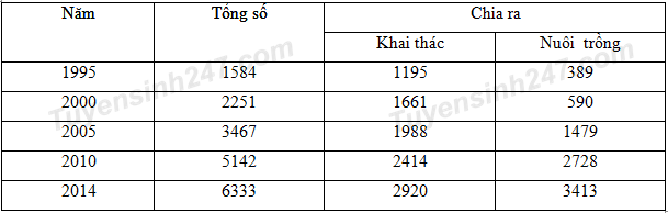 Cho bảng số liệu sau Sản lượng thuỷ sản của nước ta giai đoạn 1995 – 2014 (Đơn vị: nghìn