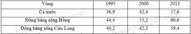 Cho bảng số liệu NĂNG SUẤT LÚA CỦA VÙNG ĐỒNG BẰNG SÔNG HỒNG, ĐỒNG BẰNG SÔNG CỬU LONG VÀ