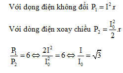 Khi cho đi qua cùng một cuộn dây, một dòng điện không đổi sinh công suất gấp 6 lần một dòng