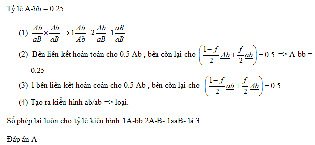 (2). Ab/aB (liên kết hoàn toàn) x Ab/aB (hoán vị gen với tần số bất kỳ nhỏ hơn 50%)