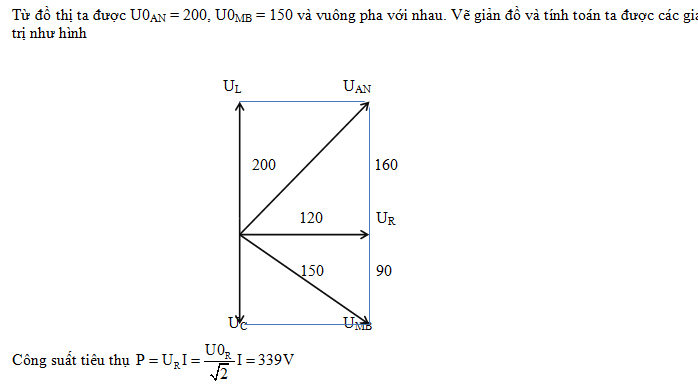 Một đoạn mạch điện AB gồm cuộn dây thuần cảm, điện trở thuần R và tụ điện C mắc nối tiếp theo đúng thứ tự. M là điểm nối giữa cuộn cảm và điện trở R, N là điêm rnoois giữa điện trở R và tụ điện. Cho đồ thị biểu diễn sự phụ thuộc theo thời gian của các điện áp tức thời uAN, uMB như hình vẽ. Biên độ của cường độ dòng điện là 4A. Công suất tiêu thụ của đoạn mạch có giá trị gần giá trị nào nhất sau đây?