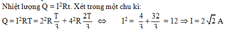 chạy qua một đoạn mạch có đặc điểm như sau: trong thời gian một phần ba đầu của chu kì nó có giá trị hiệu dụng bằng 2 A, trong thời gian còn lại của chu kì đó nó có giá trị hiệu dụng bằng 4 A. Giá trị của I bằng