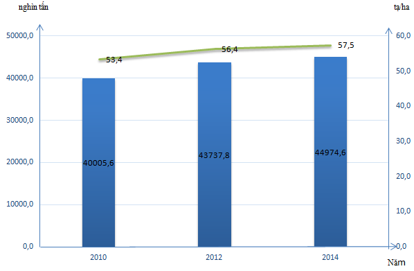 NĂNG SUẤT VÀ SẢN LƯỢNG LÚA NƯỚC TA GIAI ĐOẠN 2010-2014
