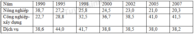 Cho bảng số liệu sau và yêu cầu vẽ biểu đồ: CƠ CẤU GDP PHÂN THEO KHU VỰC KINH TẾ cần vẽ biểu đồ gì cho thích hợp nhất: