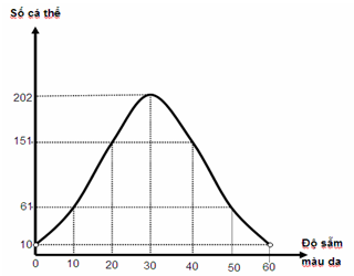 Khi nghiên cứu độ sẫm màu da ở người, thu được một đồ thị sau: