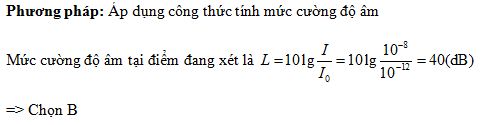 Cường độ âm tại một điểm trong môi trường truyền âm là 10-8 W/m2. Biết cường độ âm