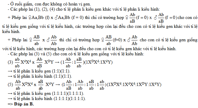Người ta tiến hành các phép lai sau đây ở loài ruồi giấm: Cho biết mỗi gen qui định một