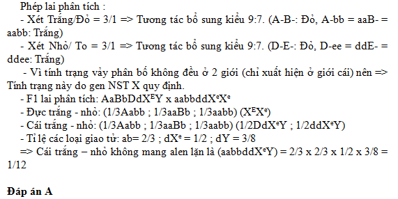 Biết ở loài này con cái là thể dị giao, con đực là thể đồng giao. Nếu cho chỉ chọn những con cá vảy trắng, nhỏ ở Fb đem tạp giao thì tỉ lệ cá cái có kiểu hình vảy trắng, nhỏ không chứa các alen trội là bao nhiêu?