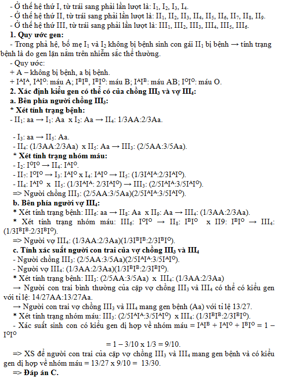 Xác suất để đứa con trai do cặp vợ chồng ở thế hệ III sinh ra mang gen bệnh và có kiểu gen dị hợp về nhóm máu là bao nhiêu?