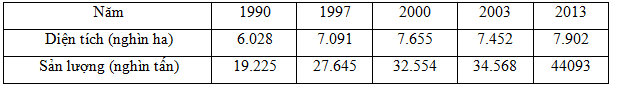 Bảng: Diện tích và sản lượng lúa nước ta thời kì 1990 – 2013