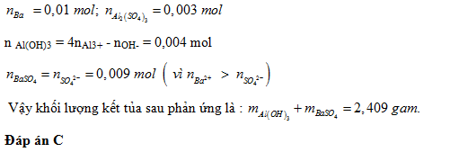 Cho 1,37 gam Ba vào 100 ml dung dịch Al2(SO4)3 0,03M thu được chất rắn có khối lượng