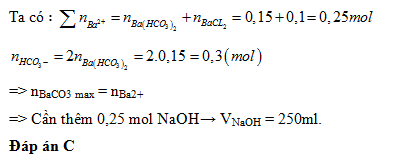 Thể tích dung dịch NaOH 1M cần cho vào dung dịch chứa 0,15 mol Ba(HCO3)2 và 0,1 mol BaCl2 để thu