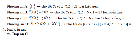 Ở một quần thể thú, xét 2 gen, gen 1 có 2 alen, gen 2 có 3 alen. Trường hợp nào sau đây sẽ tạo