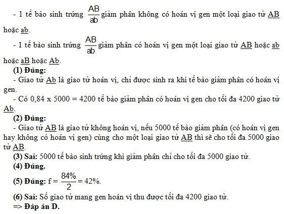 (6) Tổng số giao tử mang gen hoán vị thu được là 8400.