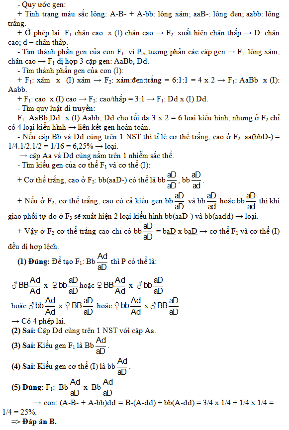 (2) Cặp gen quy định chiều cao chân thuộc cùng một nhóm gen liên kết với cặp gen Aa hoặc Bb.