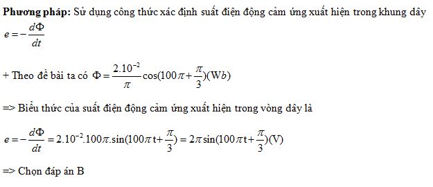 Từ thông qua một vòng dây dẫn là . Biểu thức của suất điện động cảm ứng xuất hiện