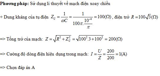 cos(100πt) V. Cường độ hiệu dụng của dòng điện ở mạch là: