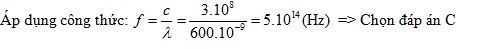 Bước sóng của bức xạ da cam trong chân không là 600nm thì tần số của bức xạ đó là