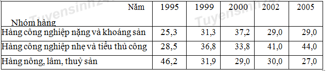 Dựa vào bảng số liệu sau đây về cơ cấu giá trị hàng xuất khẩu của nước ta.