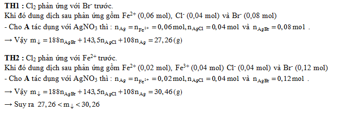 Sục 0,02 mol Cl2 vào dung dịch chứa 0,06 mol FeBr2 thu được dung dịch A. Cho AgNO3 dư vào A thu được m gam kết tủa. Biết các phản ứng xảy ra hoàn toàn. Giá trị của m là :