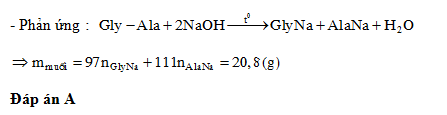 Thủy phân 14,6 gam Gly-Ala trong dung dịch NaOH dư thu được m gam muối. Giá trị của m là :