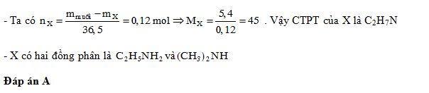 Cho 5,4 gam amin đơn chức X tác dụng với dung dịch HCl loãng dư, thu được 9,78 gam muối. Số đồng phân cấu tạo của X là.