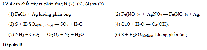 Số cặp chất có xảy ra phản ứng là:
