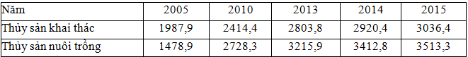 Cho bảng số liệu sau: Sản lượng thủy sản của nước ta (đơn vị: nghìn tấn) (Niên giám