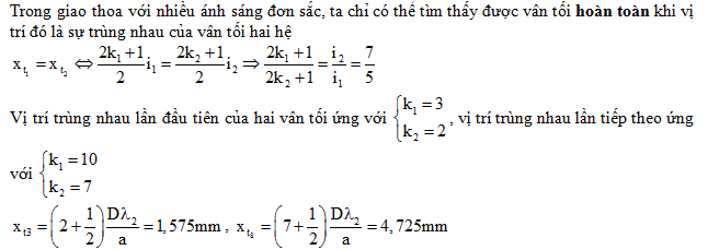 Trong thí nghiệm Y-âng về giao thoa ánh sáng a = 3mm; D = 3m, hai khe được chiếu sáng bằng chùm ánh sáng có bước sóng l1 = 0,45µm. Biết độ rộng vùng giao thoa trên màn và nằm đối xứng qua vân sáng chính giữa. Các vị trí hoàn toàn tối trên vùng giao thoa cách vân sáng chính giữa là