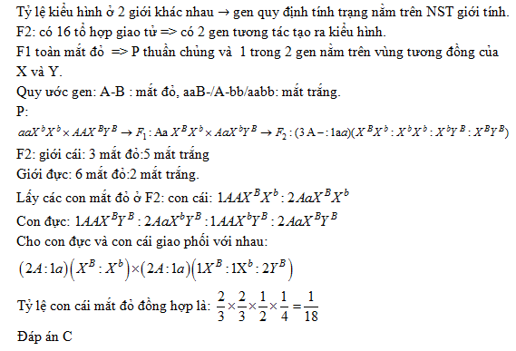 Ở một loài động vật, khi cho cá thể cái (XX) mắt trắng giao phối cá thể đực (XY) mắt đỏ, thế hệ F1 toàn mắt đỏ, F1 giao phối ngẫu nhiên, thế hệ F2 thu được