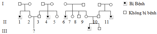 Một bệnh di truyền đơn gen xuất hiện trong phả hệ dưới đây