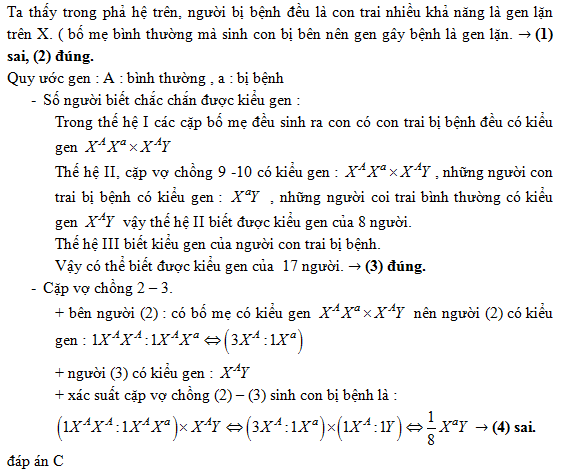 2.gen gây bệnh nhiều khả năng là gen lặn liên kết NST X
