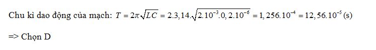Một mạch dao động điện từ LC gồm cuộn dây thuần cảm có độ tự cảm L=2 mH và tụ điện có điện dụng C=0,2μF. Biết dây dẫn có điện trở thuần không đáng kể và trong mạch có dao động điện từ riêng. Lấy π=3,14. Chu kì dao động điệntừ riêng trong mạch là