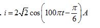 V thì cường độ dòng điện qua cuộn cảm là i = 2,0 A. Biểu thức của cường độ dòng điện qua cuộn cảm là