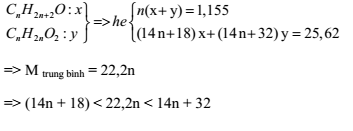 Hỗn hợp X gồm một ancol và một axit cacboxylic đều no đơn chức và mạch hở có cùng số nguyên tử cacbon trong phân tử. Đốt cháy hoàn toàn 25,62gam X thu được 28,872 lít khí CO2 (đktc). Đun nóng 25,62gam X với xúc tác H2SO4 đặc thu được m gam este (giả sử hiệu suất phản ứng este hóa bằng 60%). Giá trị của m gần nhất với giá trị nào sau đây: