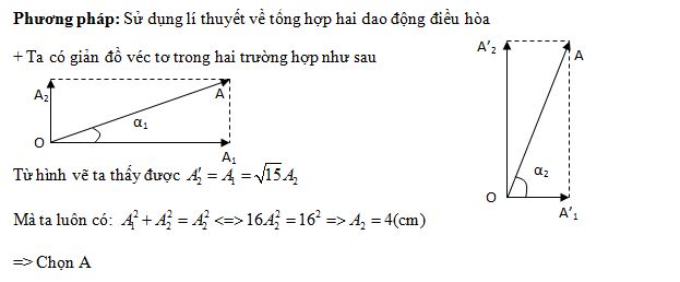 lần (nhưng vân giữ nguyên pha của hai dao động thành phần) khi đó dao động tổng hợp có biên độ không đổi nhưng lệch pha so với dao động thứ nhất một góc α2, với α1 + α2 = π/2. Giá trị ban đầu của biên độ A2 là