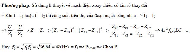 Một mạch điện RLC nối tiếp, cuộn dây thuần cảm được mắc vào một hiệu điện thế xoay chiều u = U0cos2πft (V) với U0 không đổi còn f thay đổi được. Khi f = f1 = 36 Hz và f = f2 = 64 Hz thì công suất tiêu thụ của mạch bằng nhau P1 = P2. Khi f = f3 = 48 Hz, công suất tiêu thụ của mạch bằng P3; khi f = f4 = 50 Hz thì công suất tiêu thụ của mạch bằng P4. So sánh các công suất ta có