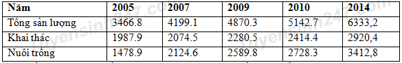 Cho bảng số liệu sau: Sản lượng thủy sản của nước ta (Đơn vị: nghìn tấn) (Nguồn: Niên