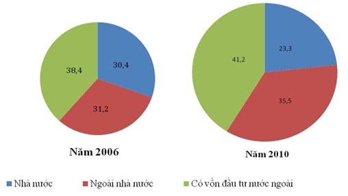 QUY MÔ VÀ CƠ CẤU GIÁ TRỊ SẢN XUẤT NGÀNH CÔNG NGHIỆP PHÂN THEO THÀNH PHẦN KINH TẾ NĂM 2006 VÀ 2010 (Đơn vị: %)