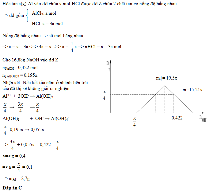Cho a gam Al tan hoàn toàn vào dung dịch chứa x mol HCl thu được dung dịch Z chứa 2 chất tan có