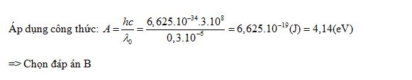 Giới hạn quang điện của kim loại dùng làm catôt là λ0=0,30μm. Công thoát của kim loại dùng làm