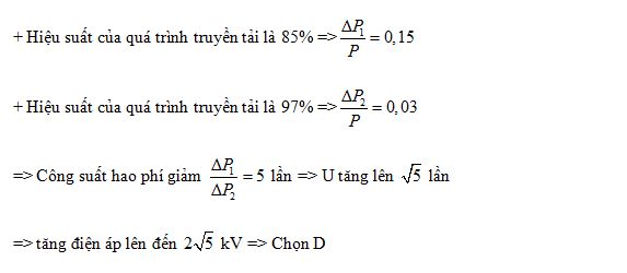 Điện năng ở một trạm phát điện được truyền đi dưới điện áp 2kV, hiệu suất trong quá trình truyền tải H=85%. Công suất truyền tải không đổi. Muốn hiệu suất trong quá trình truyền tải tăng đến 97% thì ta phải