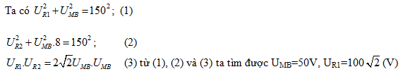 lần và dòng điện trong mạch trước và sau khi thay đổi lệch pha nhau π/2 rad. Điện áp hiệu dụng hai đầu đoạn mạch AM khi chưa thay đổi L là