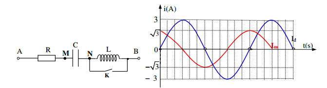Cho mạch điện như hình vẽ. Điện áp xoay chiều ổn định giữa hai đầu A và B là . Khi K mở