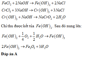 Cho dung dịch NaOH (dư) vào dung dịch chứa hỗn hợp FeCl2 và CrCl3, thu được kết tủa X. Nung X