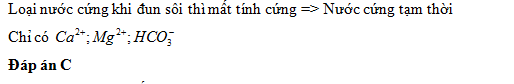 Một loại nước cứng khi đun sôi thì mất tính cứng. Trong loại nước cứng này có hòa tan những chất nào sau đây?