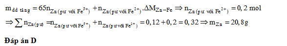 Cho m gam bột Zn vào 500 ml dung dịch Fe2(SO4)3 0,24M. Sau khi các phản ứng xảy ra hoàn toàn, khối