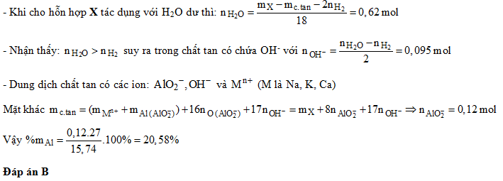 Hòa tan hoàn toàn 15,74 gam hỗn hợp X chứa Na, K, Ca và Al trong nước dư thu được dung dịch chứa