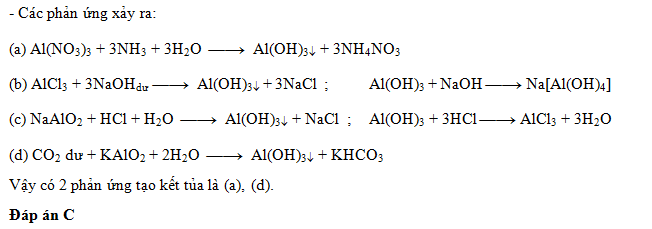 (d) Dẫn khí CO2 dư vào dung dịch KAlO2.