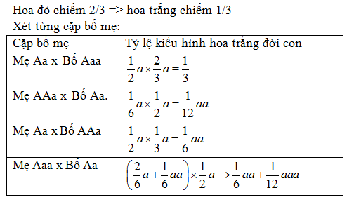 Một loài thực vật, gen A qui định quả đỏ, a qui định quả vàng. Ở cơ thể lệch bội hạt phấn (n +1) không cạnh tranh được với hạt phấn (n), còn các loại tế bào noãn đều có khả năng thụ tinh. Phép lai nào dưới đây cho quả đỏ chiếm tỉ lệ 2/3